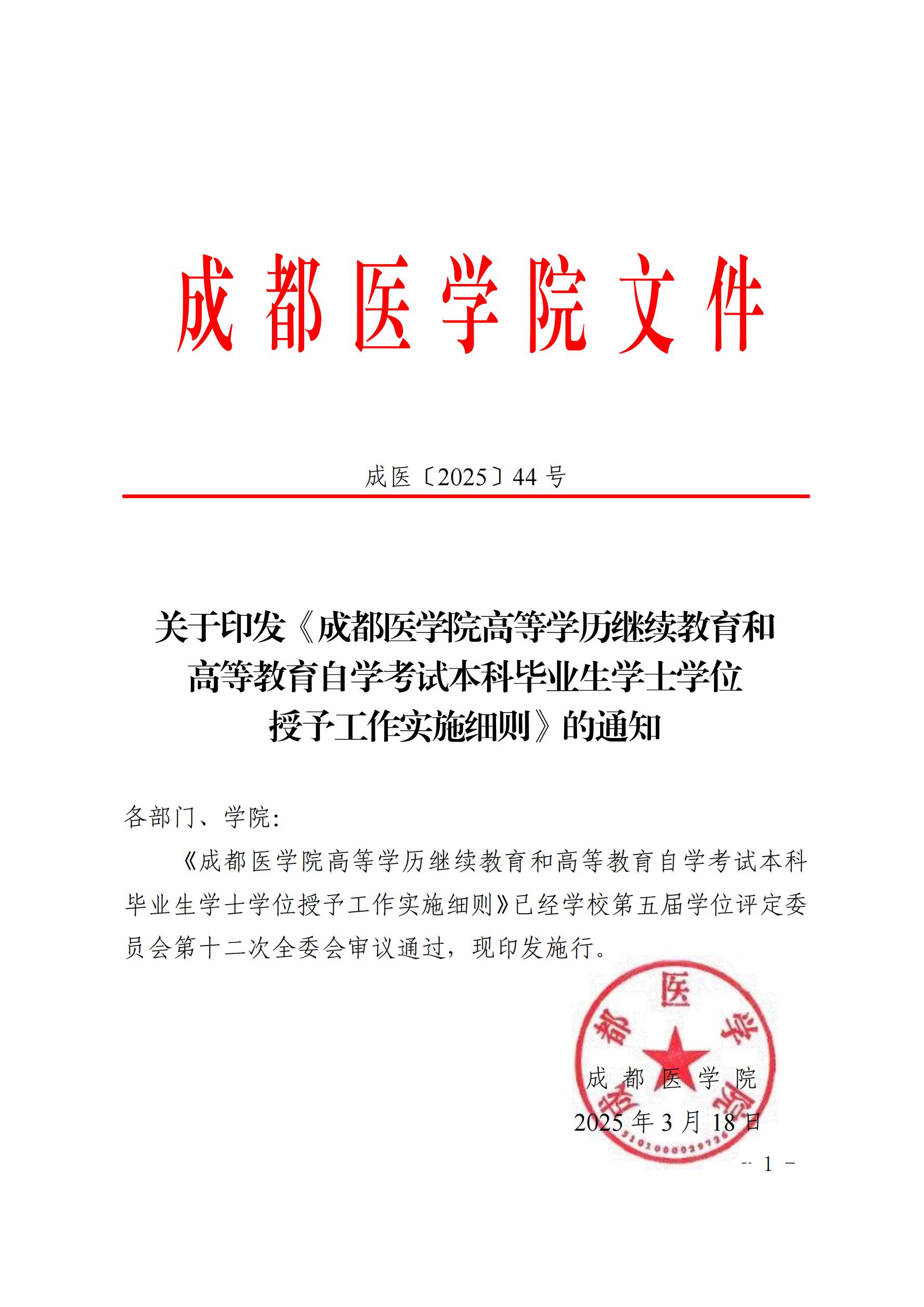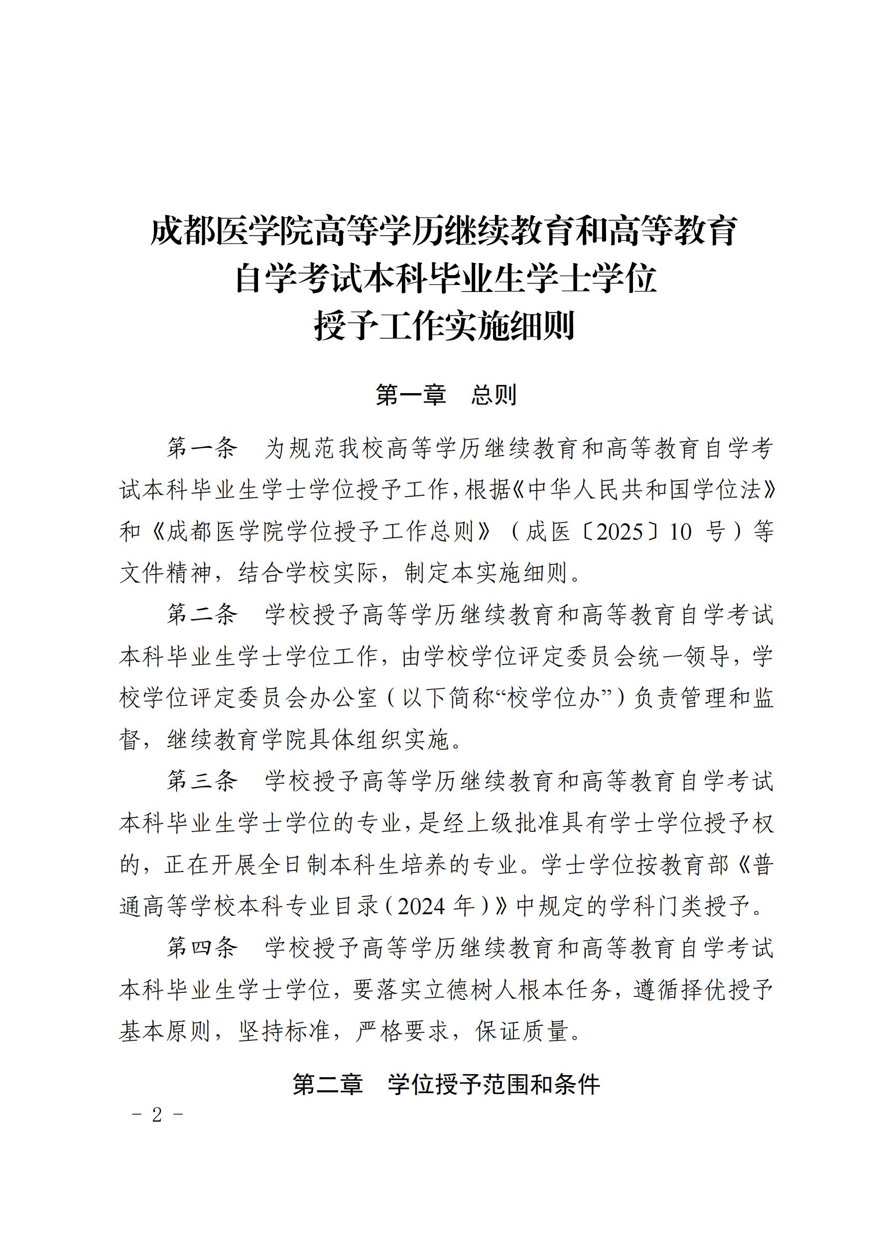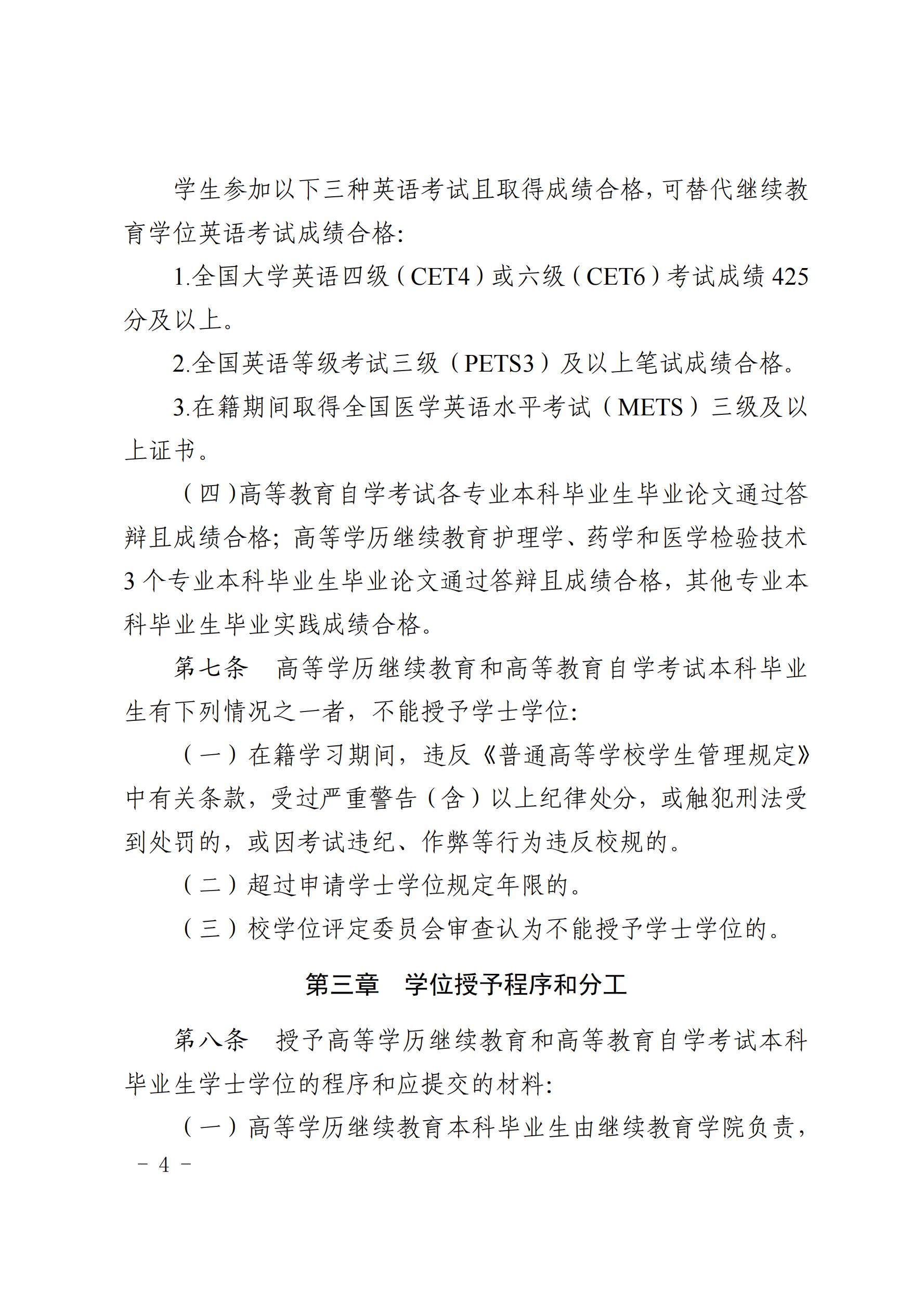 成都医学院高等学历继续教育和高等教育自学考试本科毕业生学士学位授予工作实施细则